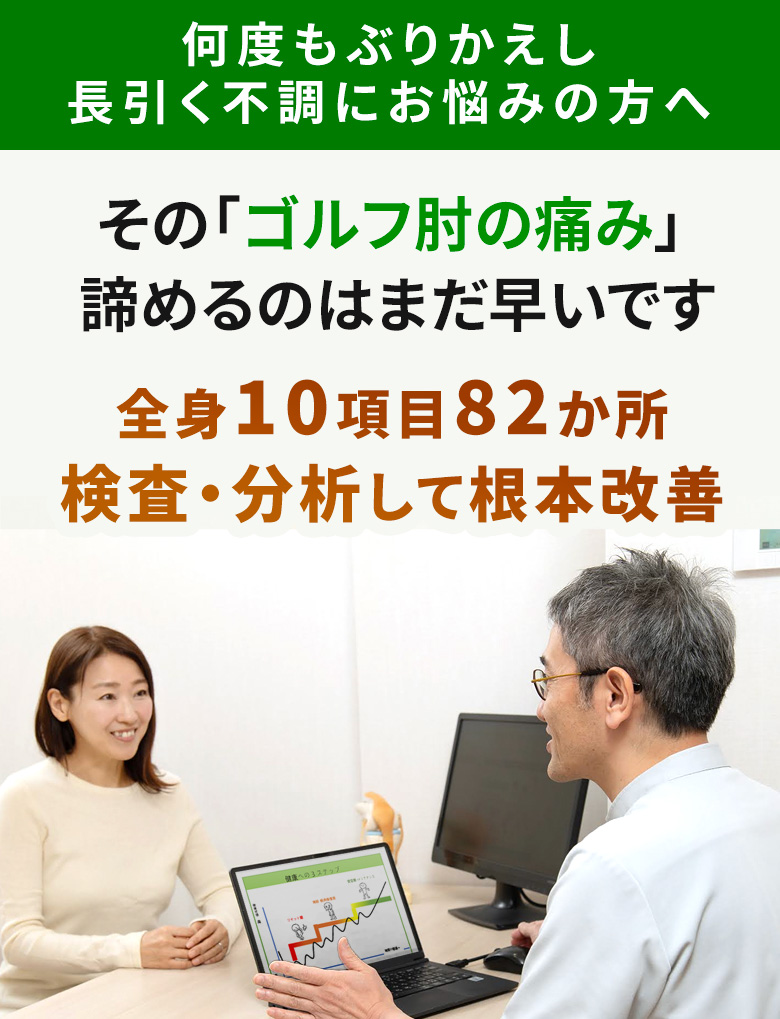 長引くゴルフ肘でも、計画的に施術を行えば改善が期待できます。