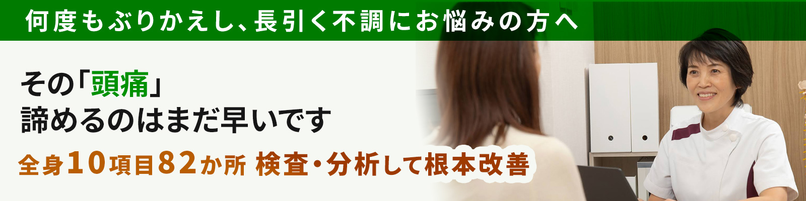 長年の頭痛にお悩みの方、ぜひ一度ご相談ください。あなたの頭痛の根本原因を特定し、改善への道を一緒に見つけましょう。