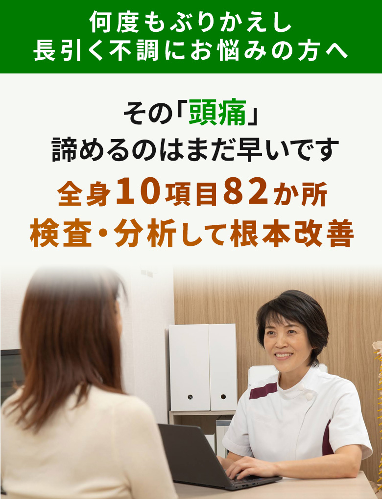 - あなたの頭痛の本当の原因を見つけ出し、根本からの改善を目指します。