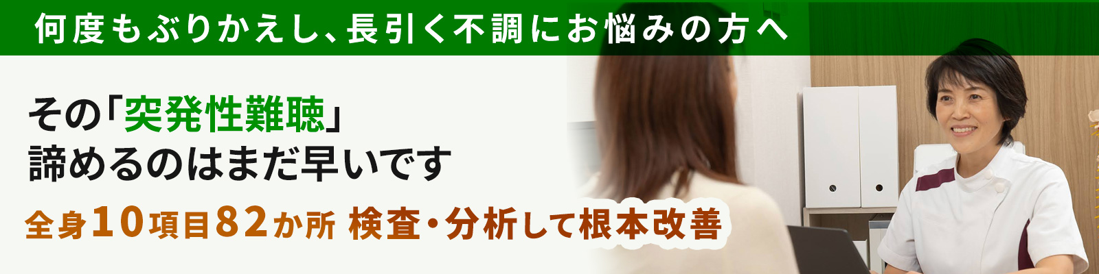 神経伝達の悪化により、自然治癒力が低下した結果の症状として突発性難聴が引き起こされるケースが多いと考えられます。